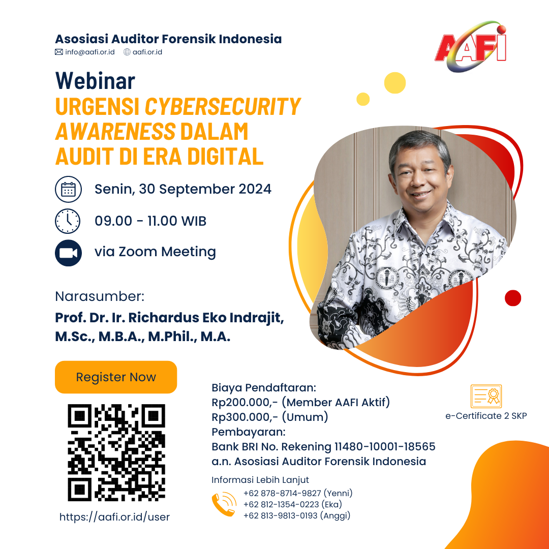 Asosiasi Auditor Forensik Indonesia Wiritlak (AAFI WIRITLAK) mengundang Bapak/Ibu dalam Webinar Online dengan Tema: Urgensi Cybersecurity Awareness dalam Audit di Era Digital